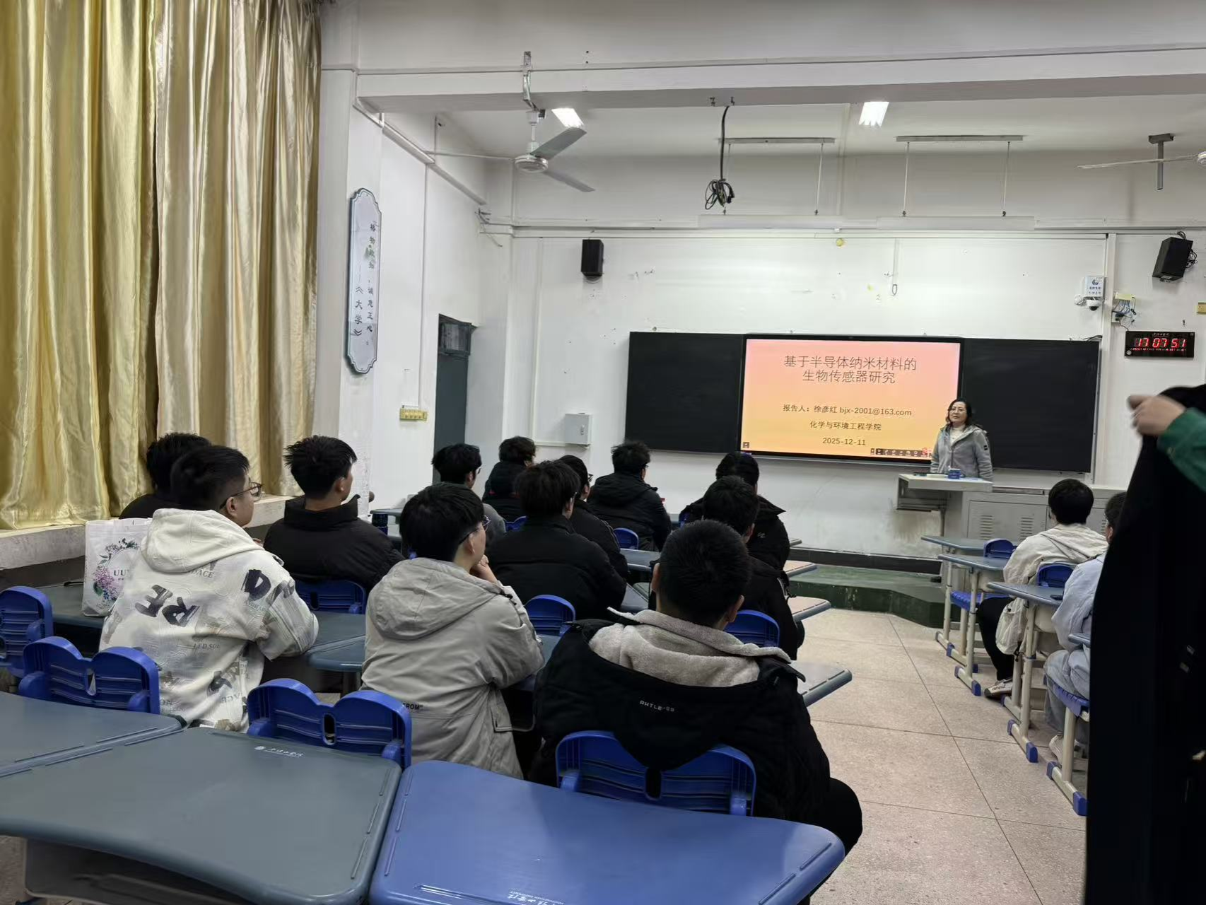 2025年12月11日下午,徐彦红博士在4号教学楼4101教室为材料科学与工程专业师生举办了主题为“基于半导体纳米材料的生物传感器研究”的学术报告。报告中,徐博士向同学们介绍了半导体纳米材料结构、制备及其在生物传感器中的应用研究,并重点阐述了半导体复合纳米材料在抗坏血酸检测中的应用。徐博士简述了抗坏血酸检测在生物、医学、食品、农业和新兴交叉领域中的重要地位和研究意义,并重点讲解如何根据材料优异特性设计所需结构的半导体纳米复合材料,能够显著提升生物传感器在灵敏度、选择性和响应速度方面的性能,为疾病早期诊断、食品安全等领域的精准检测提供了全新的技术路径。徐博士设计制备出了一系列新型半导体纳米复合材料将其应用于电化学分析领域,以具体案例说明了该材料在医学、食品等实际应用中的巨大潜力。此次学术报告不仅拓宽了大家的科研视野,更加强了材料科学、生物医学、化学等多学科之间的思想碰撞与交流合作,对我校相关领域的科研创新与人才培养起到了积极的推动作用。