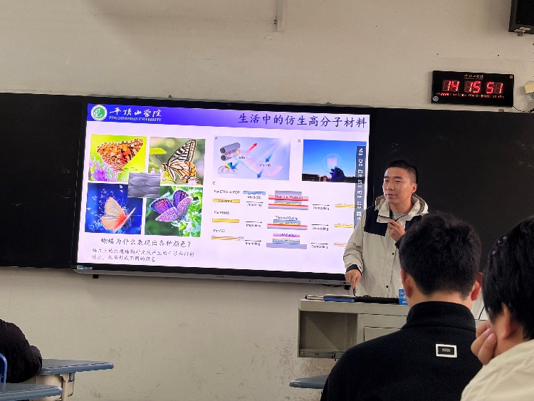2025年11月6日,孙颢瑄博士在4号教学楼4201教室举办学术讲座,报告题目为《自然中的多彩高分子材料》。围绕报告主题,孙颢瑄博士以自然界中的高分子材料为例,引出生活中科技的发展,激发了同学们的科研兴趣,扩宽了同学们的视野。从自然界中的材料出发引导学生设计材料,并对自己的研究方向进行介绍,提升了同学们的社会责任感。鼓励同学们积极发现生活周围的乐趣和科研价值,培养学生的探索求知精神,为社会的进一步发展贡献自己的一份力量。同学们听讲过程中与老师积极互动,扩宽大家知识面的同时提升了同学们的创新和独立思考意识,同学们之间积极讨论氛围融洽。